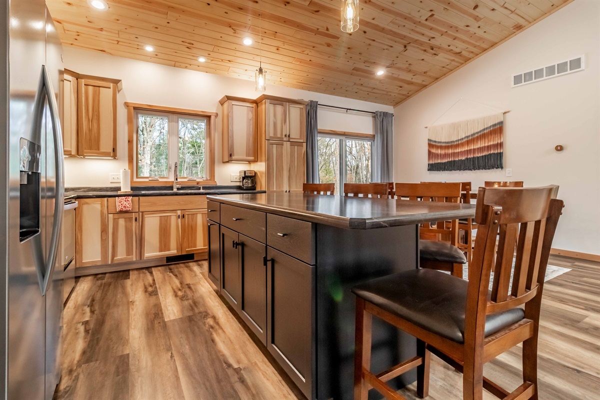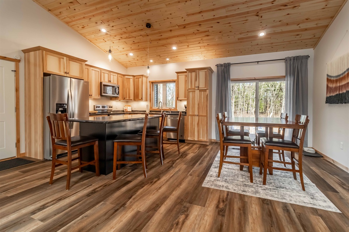 Welcome to your woodland retreat near the heart of Wisconsin’s lake and golf country. This thoughtfully designed 4BR, 2BA home is perfect for families, golf groups, or anyone looking to relax and explore the great outdoors - year-round. Enjoy vaulted wood ceilings, screened patio, large front porch and a cozy gas fireplace, and a well-stocked kitchen with everything you need to cook and gather. After a day of adventure, unwind in the finished basement or challenge your crew to a friendly game of pool in the garage.