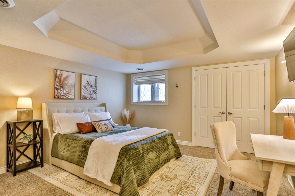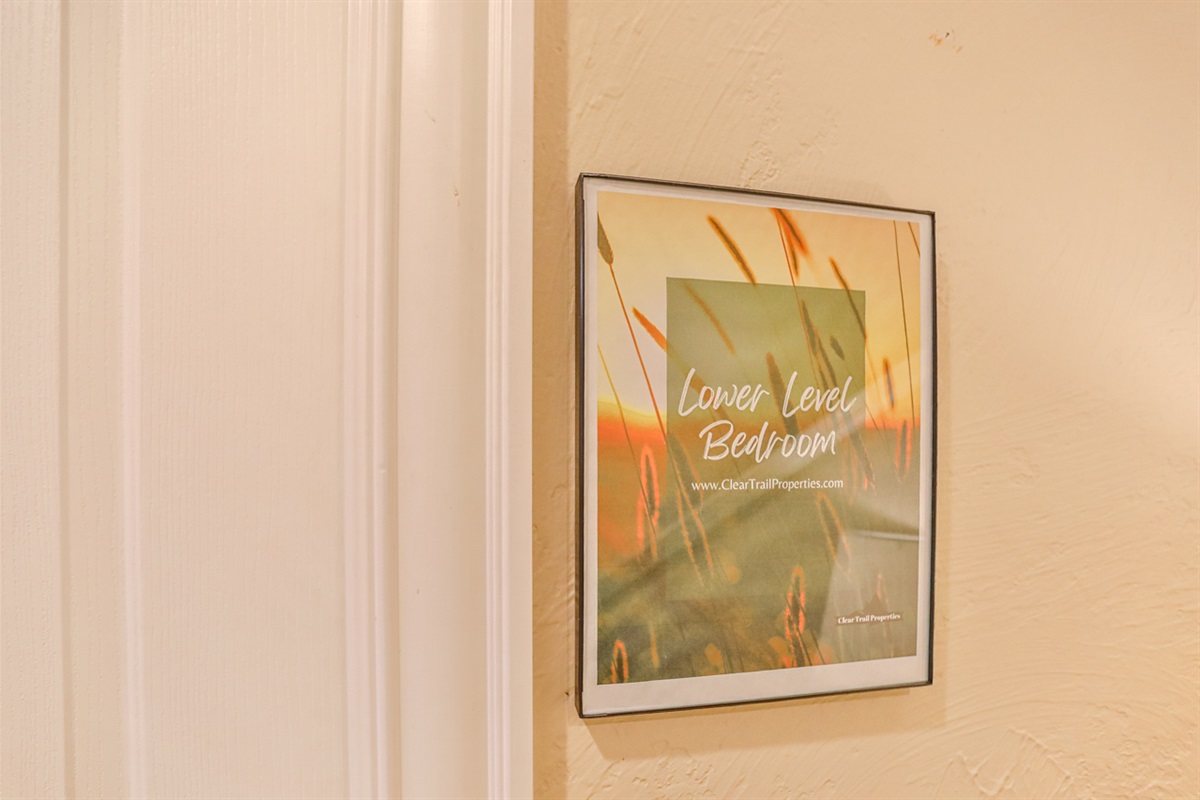 ✔ Private lower-level suite with king bed, dresser, Smart TV, and blackout curtains