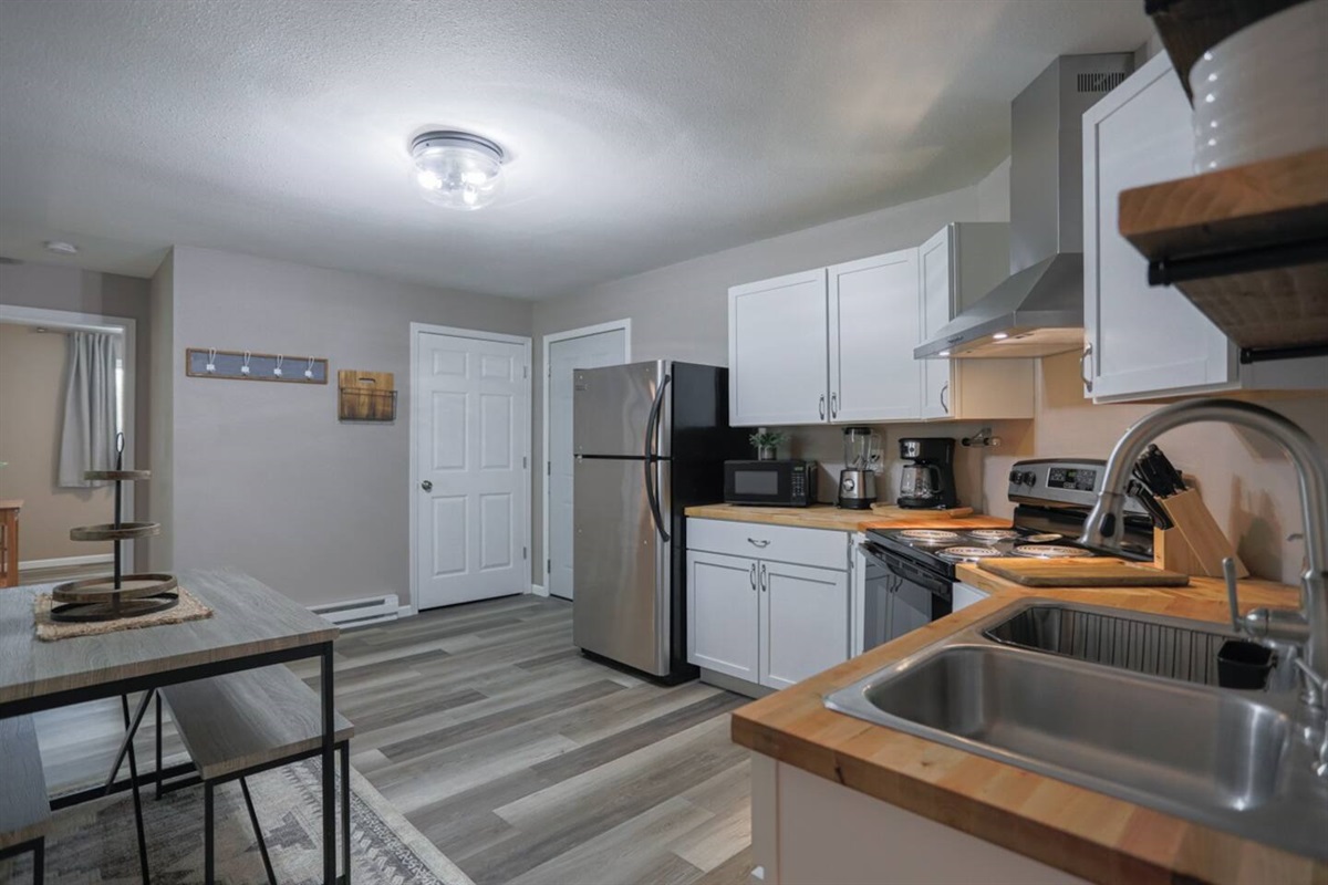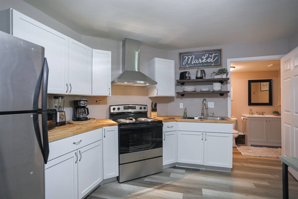✔ Fully equipped kitchen stocked with cookware, utensils, full-size appliances, coffee maker, toaster, and microwave