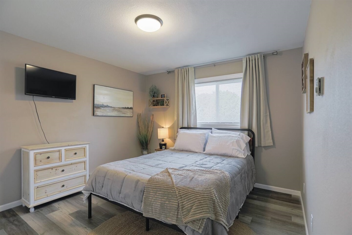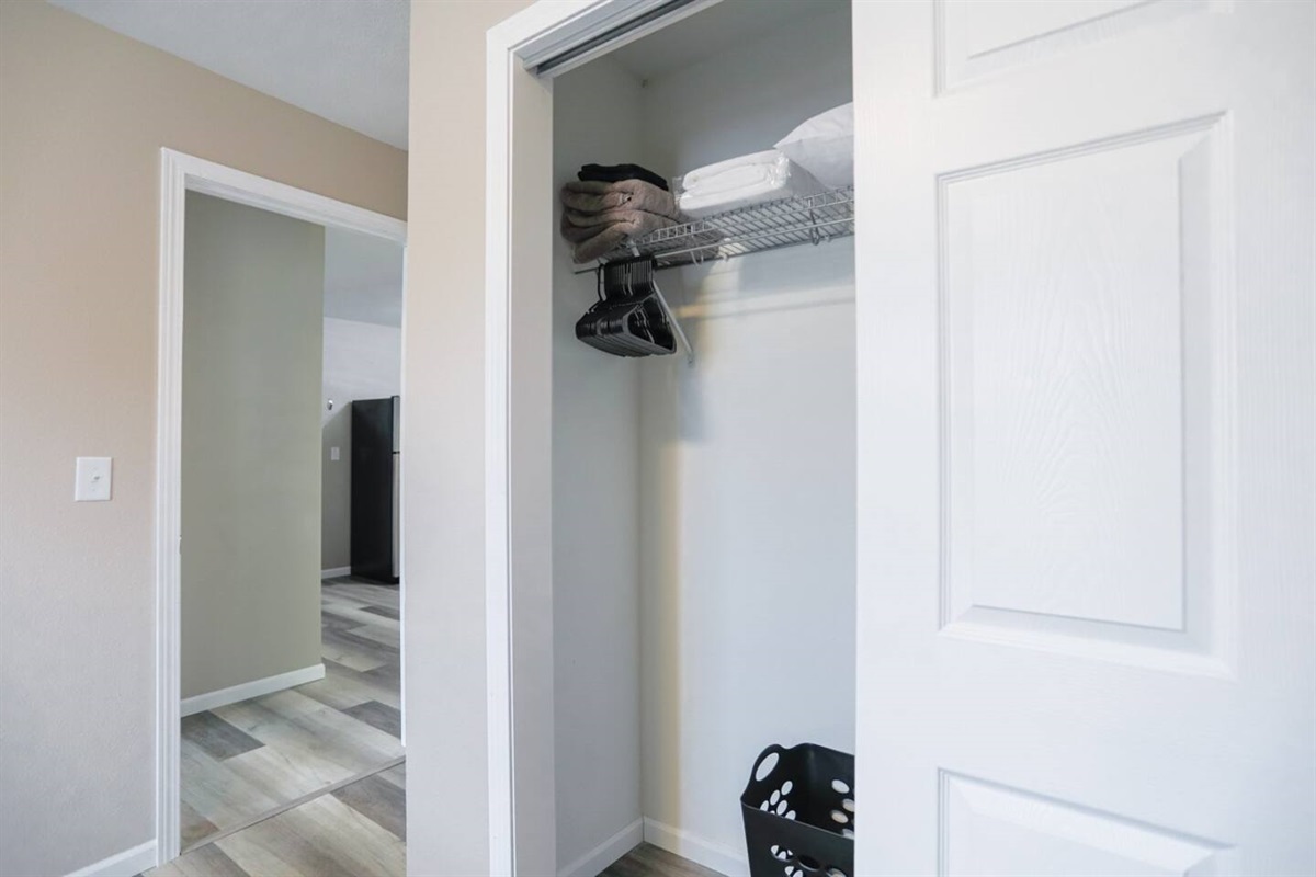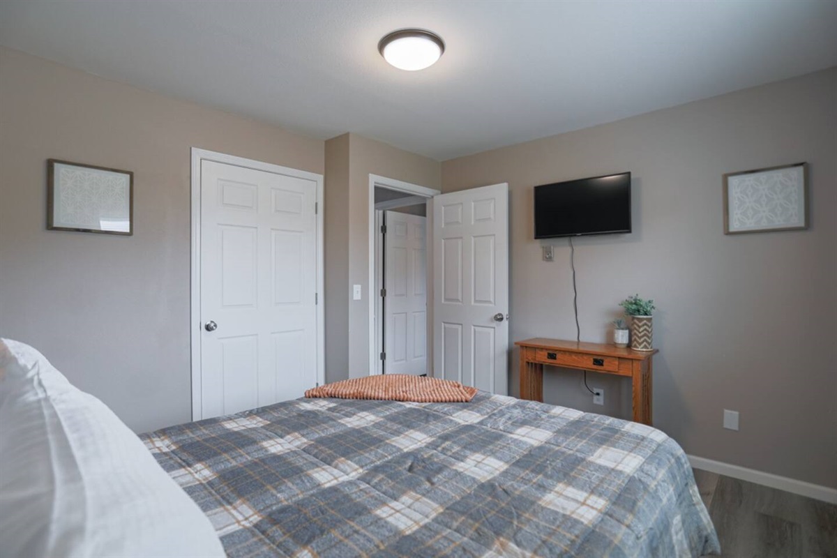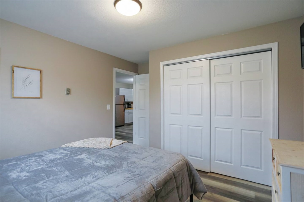 ✔ Two comfortable bedrooms with fresh linens, extra blankets, and full clothing storage