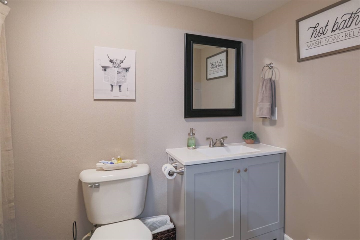 ✔ One full bathroom with vanity, clean towels, hot water, and starter essentials