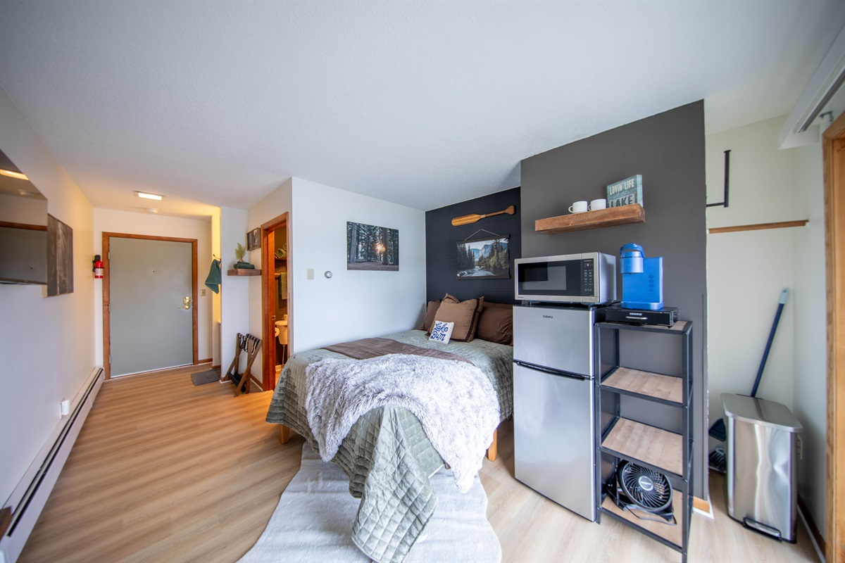 Welcome to Lakeview Stay by Clear Trail Properties - your cozy and clean second-floor studio in the heart of Minocqua. Enjoy hotel-style simplicity with a queen bed, private bath, mini fridge, microwave, and Keurig. Just steps from a shared dock with lake access and walking distance to downtown shops and restaurants. Ideal for couples, solo travelers, or short getaways.