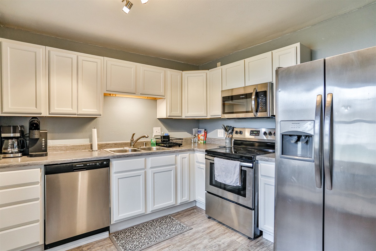 ✔ Full kitchen – Refrigerator, stove, oven, microwave, coffee maker, toaster, dishwasher, cookware, dishes, and utensils