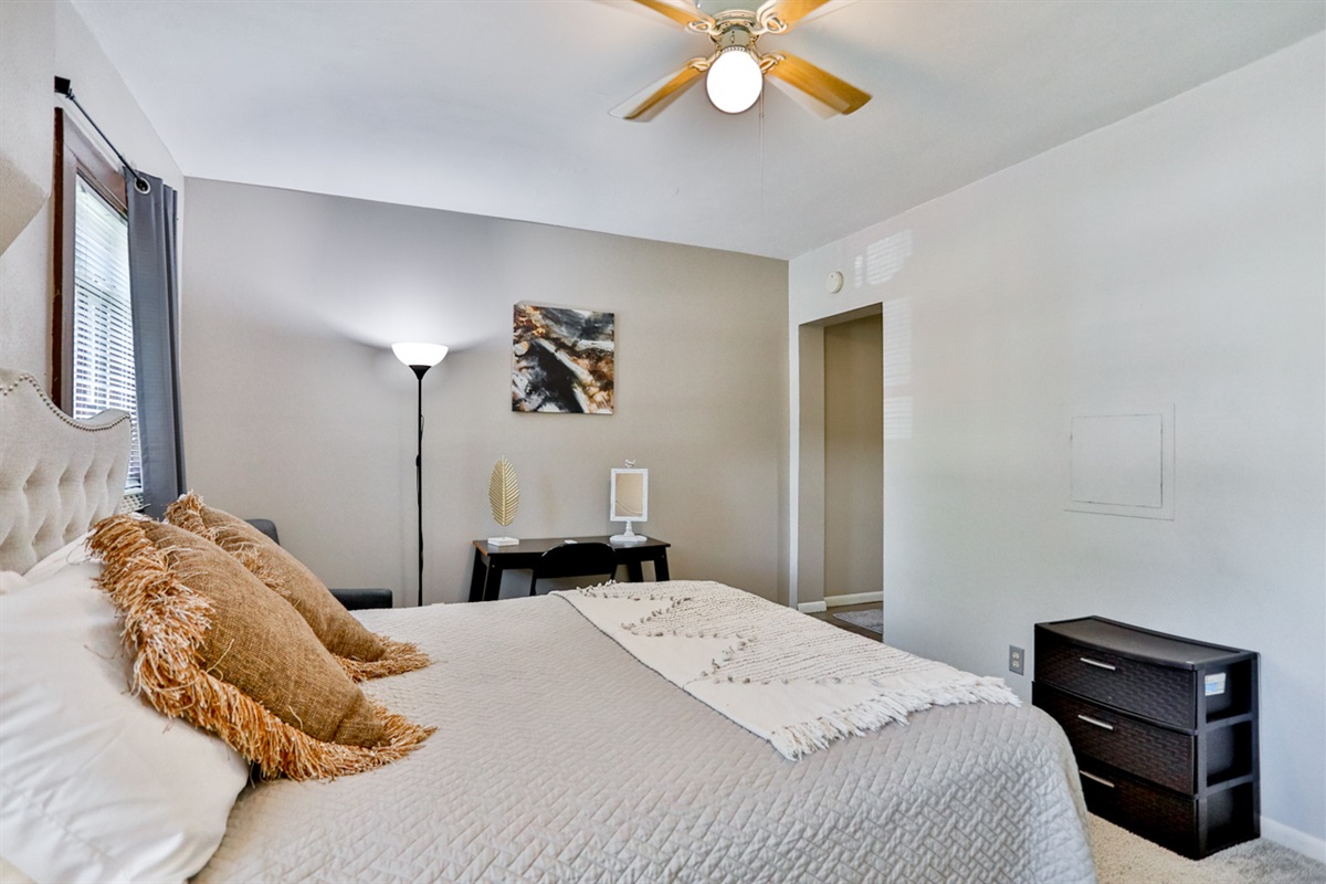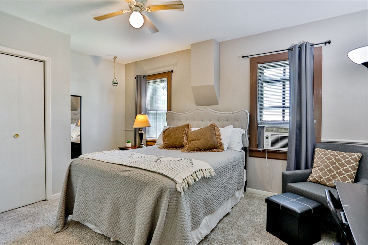 ✔ Bedroom - Queen bed, blackout curtains, dresser, closet