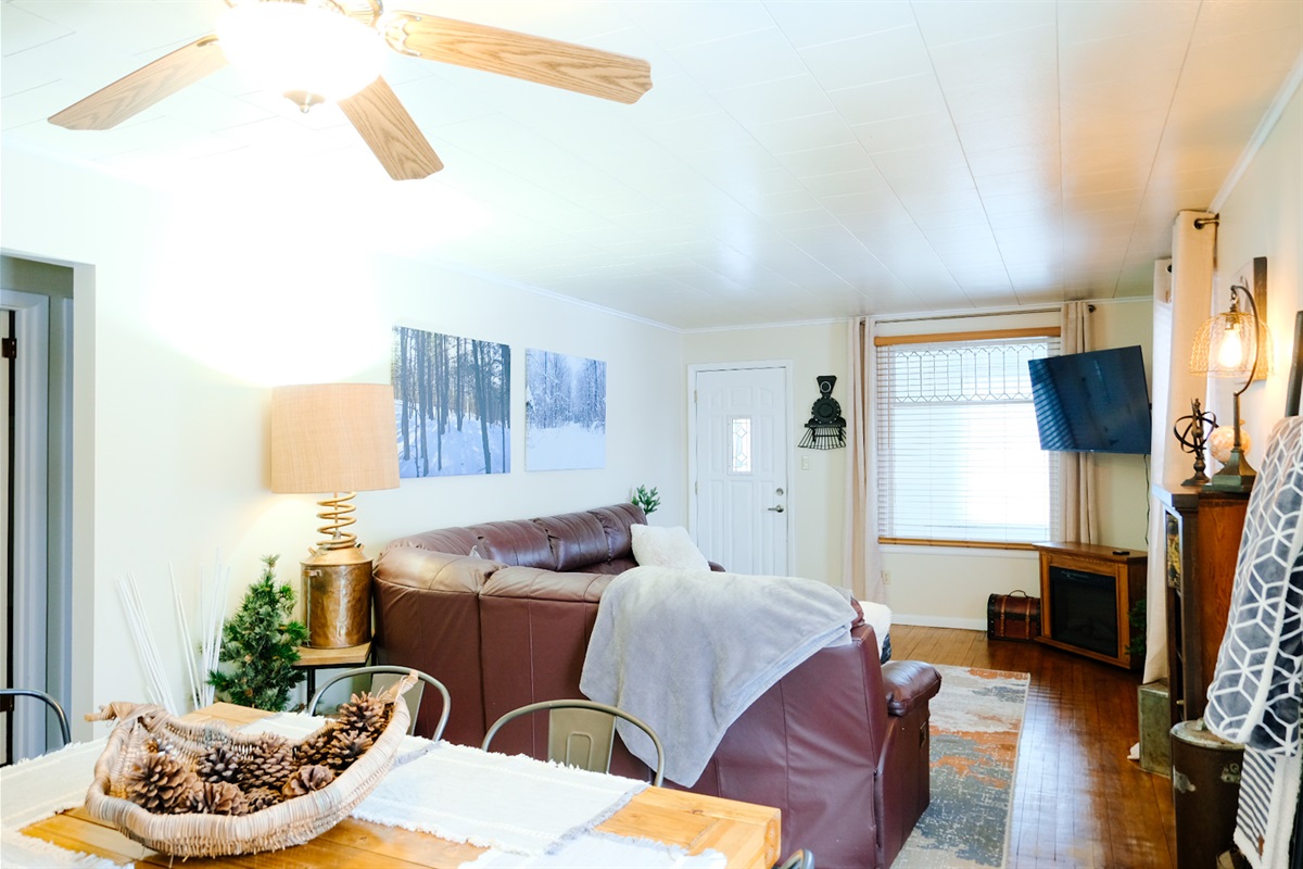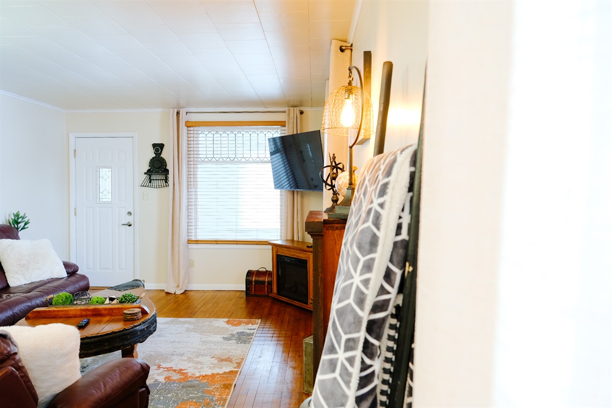 ✔ Comfortable living area with seating, flat‑screen Smart TV, and high‑speed internet