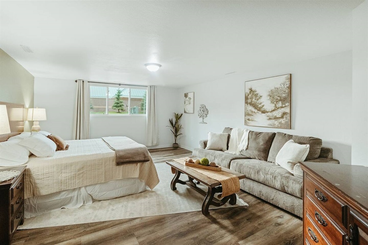 Located just off Interstate 39 and minutes from local hospitals and employers, Room #1 is on the lower level of the home and features brand-new furniture, bedding, and decor. You’ll share a spacious bathroom with just one other guest, and have access to a fully stocked shared kitchen, shared laundry room, and common areas cleaned twice a week by our professional staff.
