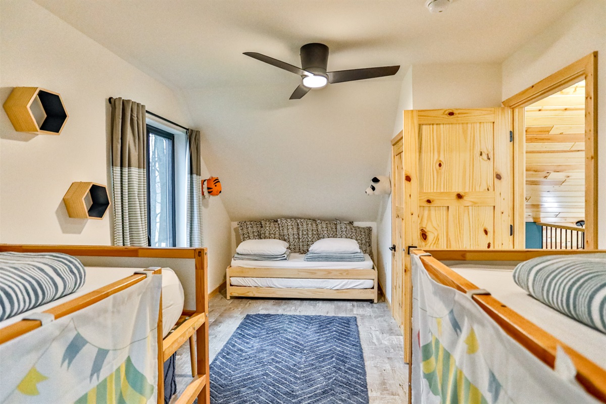 ✔ Bedroom 3: Two twin loft beds + stackable twin beds